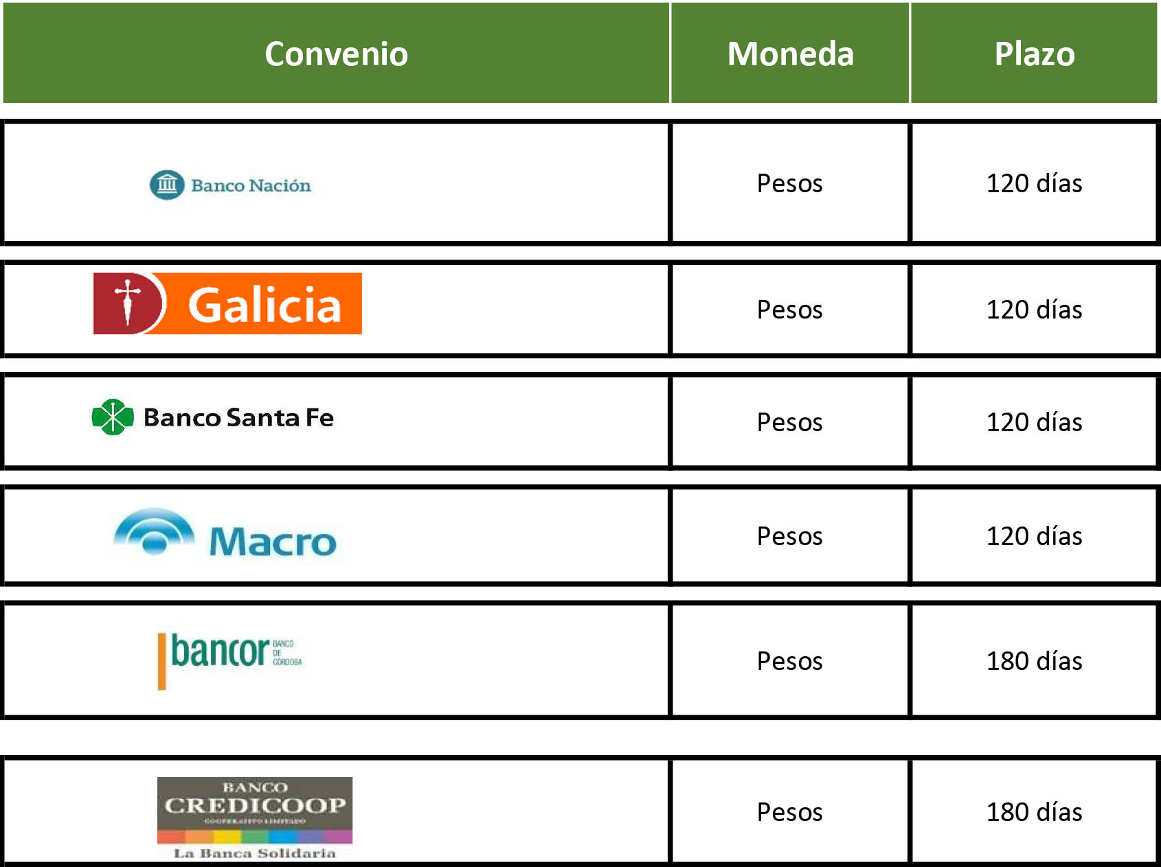 • Con Pagaré en USD y en Pesos, hasta 24 meses.